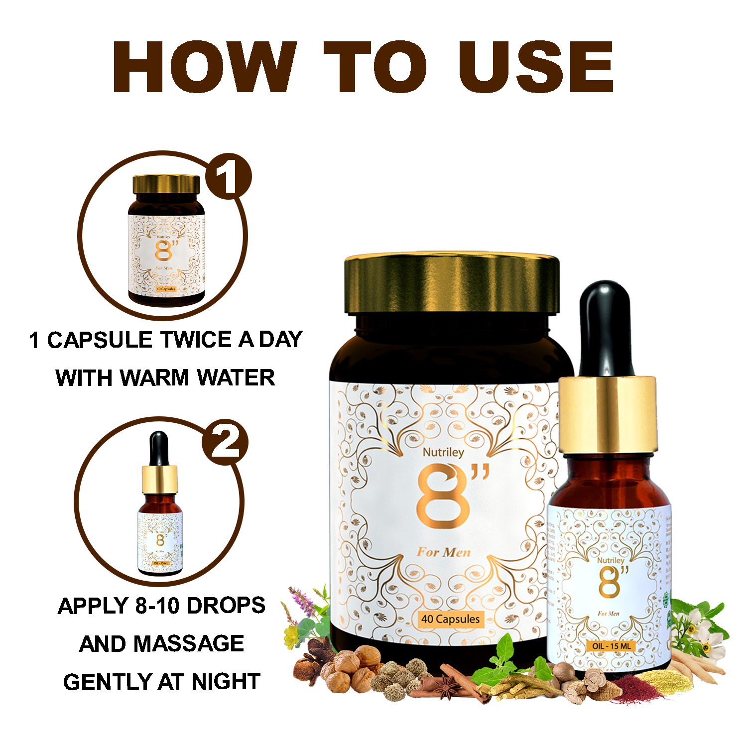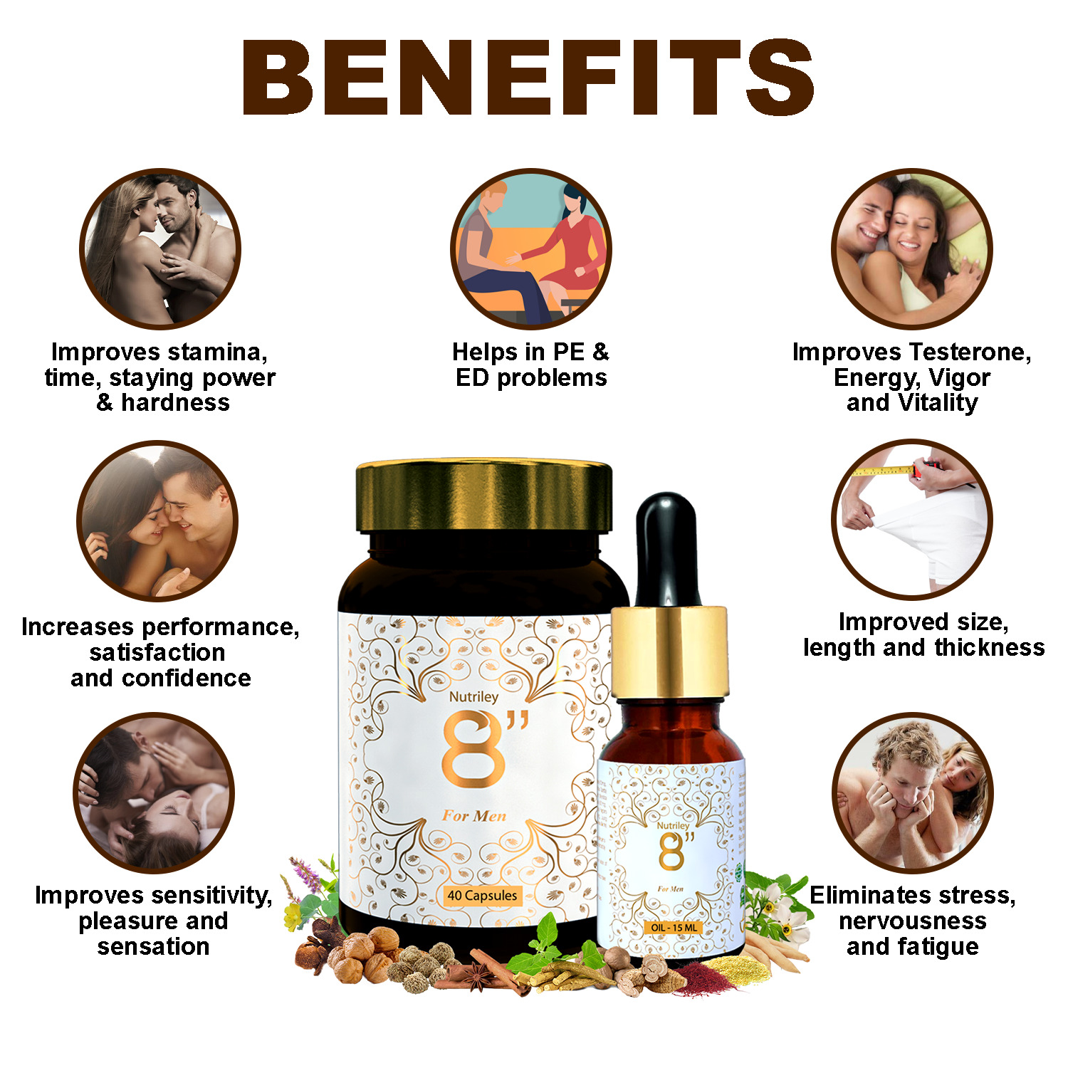 8″ Capsule & Oil is 100% Natural and Ayurvedic herbal supplement for men.