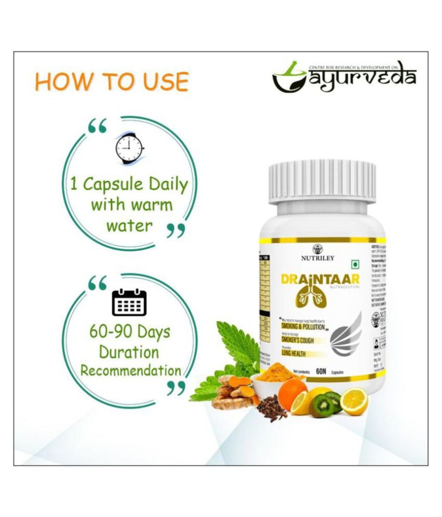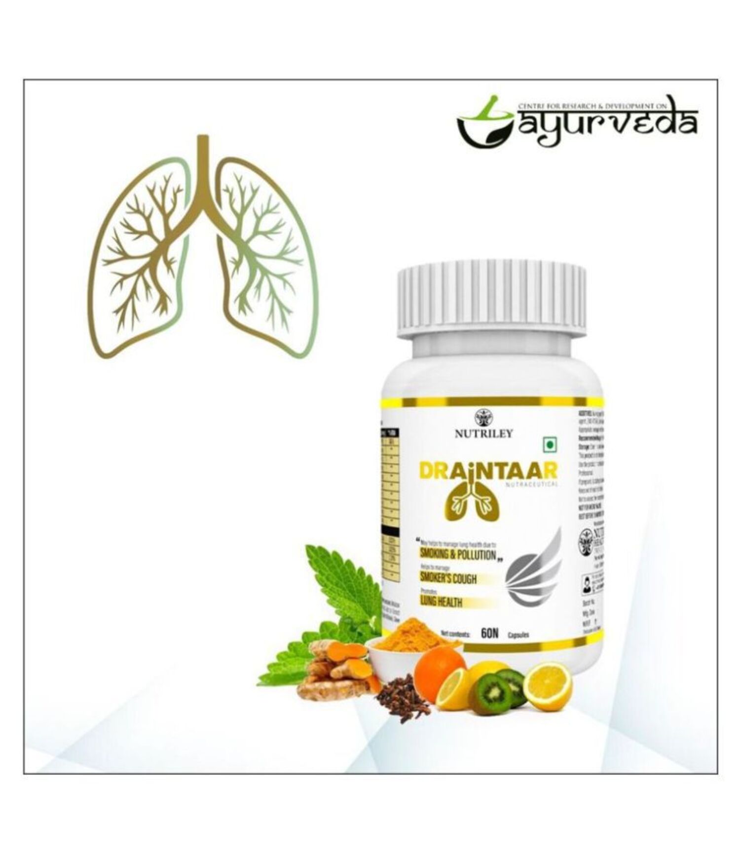 CRD Ayurveda Draintaar Capsules for Lungs Health (60 Capsules)
