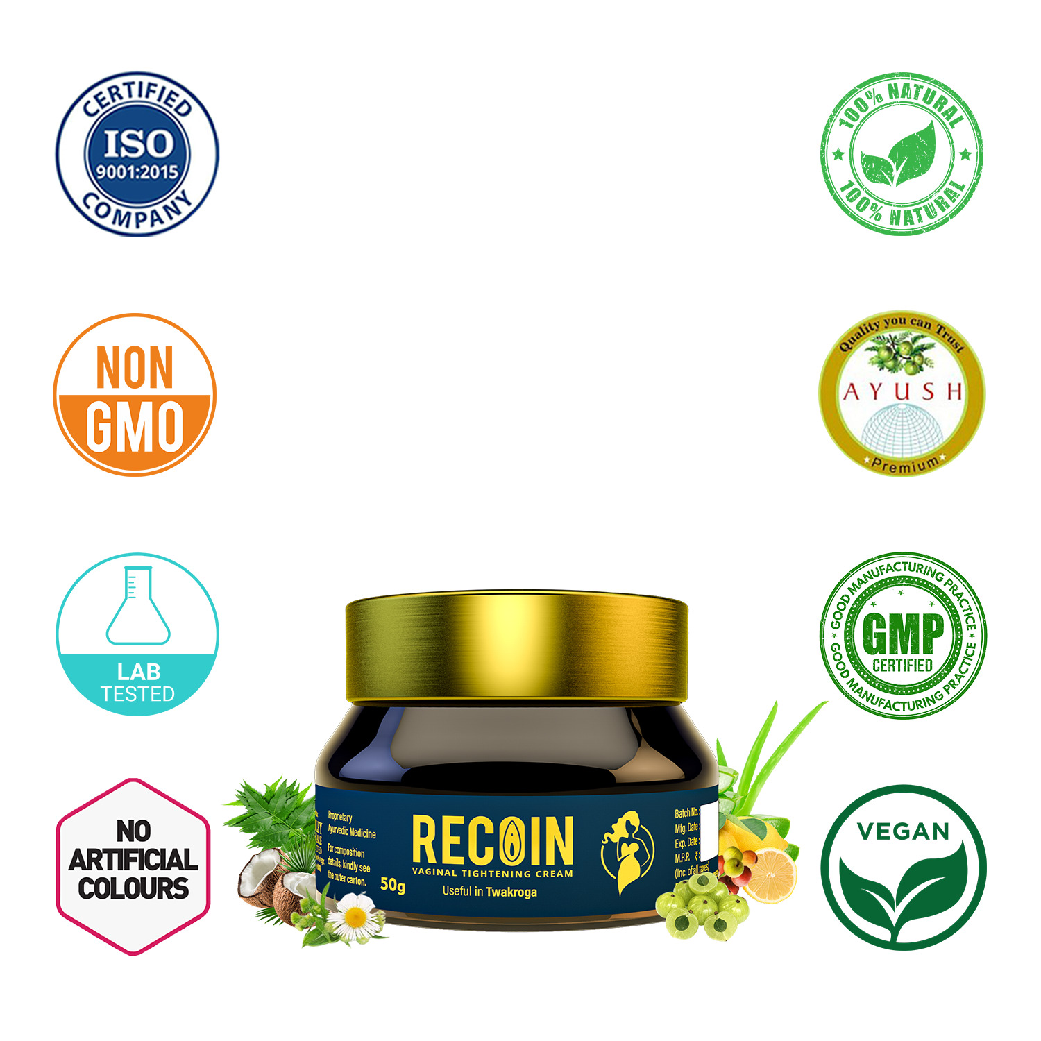 Recoin Cream is 100% Natural and Ayurvedic herbal vaginal cream for women.